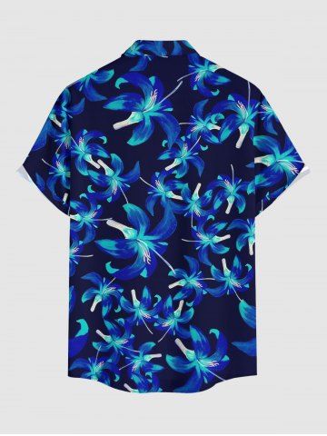 Plus Size Flowers Print Buttons Pocket Hawaii Shirt For Men - Bleu - Bleu