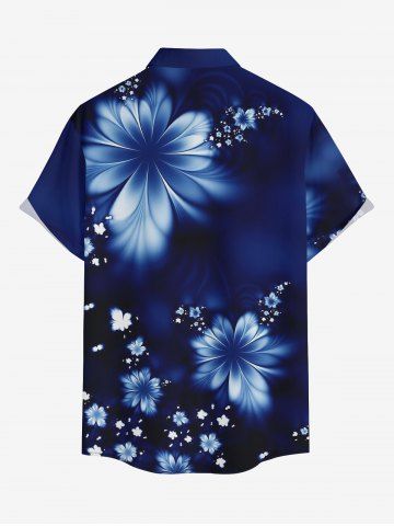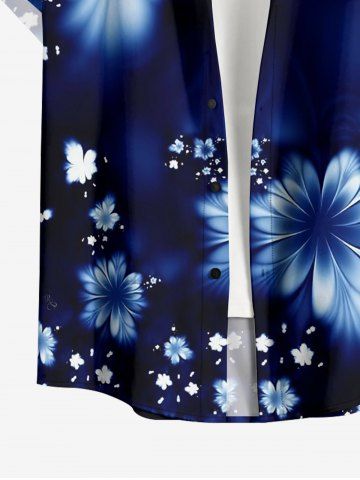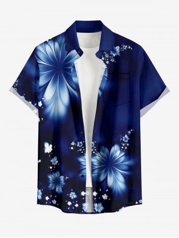Plus Size Flowers Print Buttons Pocket Hawaii Shirt For Men - Bleu Profond - L