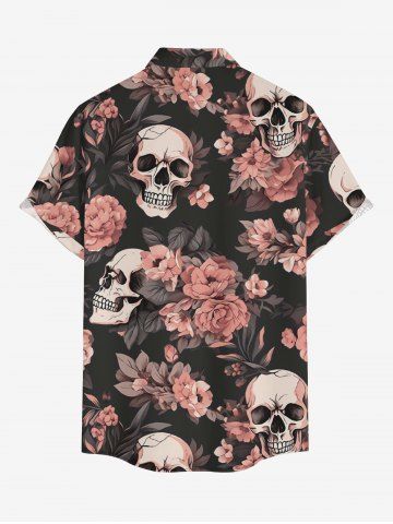 Plus Size Flowers Skulls Print Buttons Pocket Hawaii Shirt For Men - Noir - Noir