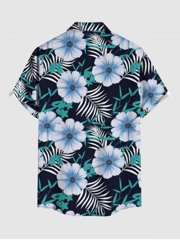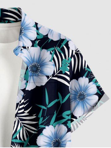 Plus Size Flowers Tropical Leaf Print Buttons Pocket Hawaii Shirt For Men - Noir - Noir