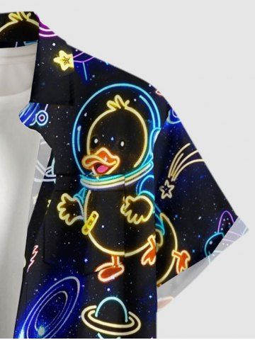 Plus Size Galaxy Duck Astronaut Stars Planet Print Buttons Pocket Hawaii Shirt For Men - Noir - Noir