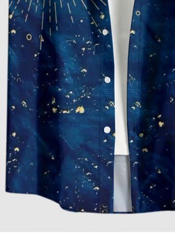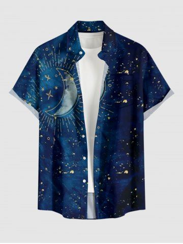 Plus Size Galaxy Moon Star Print Buttons Pocket Hawaii Shirt For Men - Bleu Profond - 4xl