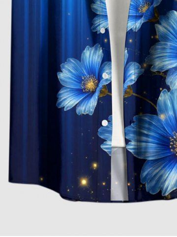 Plus Size Glitter Flower Ombre Light Beam Print Hawaii Button Pocket Shirt For Men - Bleu Profond - 6xl