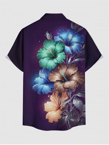 Chemise à Manches Courts > Plus Size Glitter Hibiscus Flower Print Hawaii Button Pocket Shirt For Men