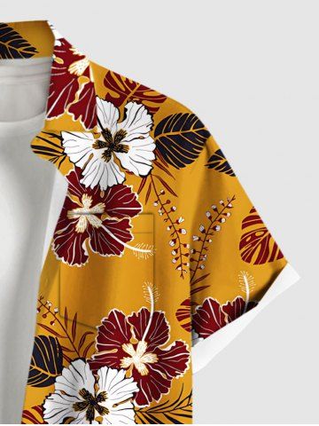 Chemise à Manches Courts> Plus Size Hibiscus Flower Leaf Print Buttons Pocket Hawaii Shirt For Men
