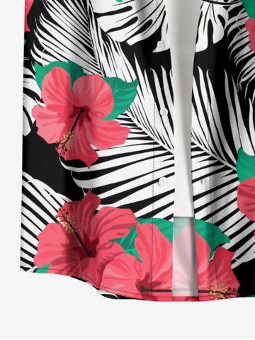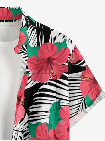 Chemise à Manches Courts> Plus Size Hibiscus Flower Leaf Print Buttons Pocket Hawaii Shirt For Men