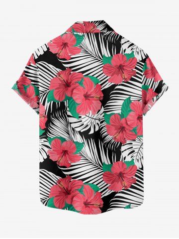 Plus Size Hibiscus Flower Leaf Print Buttons Pocket Hawaii Shirt For Men - Rouge - Rouge