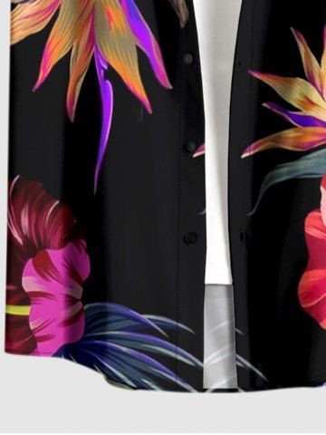 Chemise à Manches Courts> Plus Size Hibiscus Flower Leaf Print Buttons Pocket Hawaii Shirt For Men