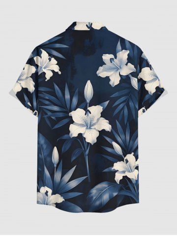 Plus Size Hibiscus Flower Leaf Print Buttons Pocket Hawaii Shirt For Men - Bleu Profond - 6xl