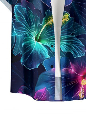 Chemise à Manches Courts > Plus Size Hibiscus Flower Leaf Print Buttons Pocket Hawaii Shirt For Men