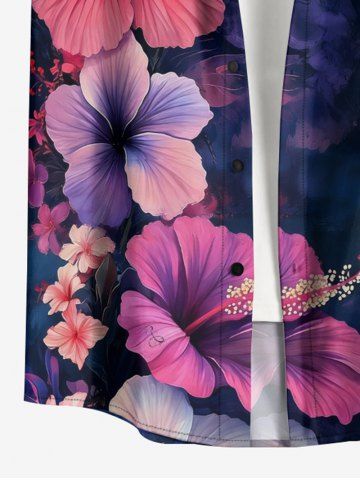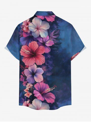 Plus Size Hibiscus Flower Print Buttons Pocket Hawaii Shirt For Men - Bleu Profond - M