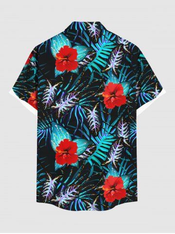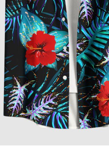 Plus Size Hibiscus Flower Tropical Leaf Print Buttons Pocket Hawaii Shirt For Men - Noir - Noir