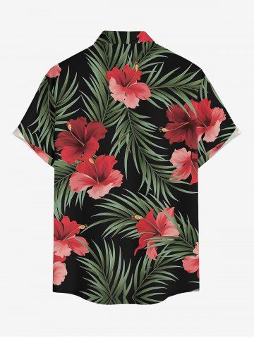 Plus Size Hibiscus Flower Tropical Leaf Print Buttons Pocket Hawaii Shirt For Men - Noir - Noir