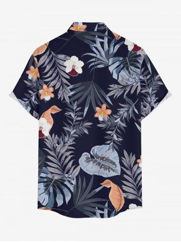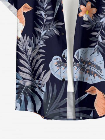 Plus Size Hibiscus Flower Tropical Leaf Print Buttons Pocket Hawaii Shirt For Men - Bleu Profond - 6xl