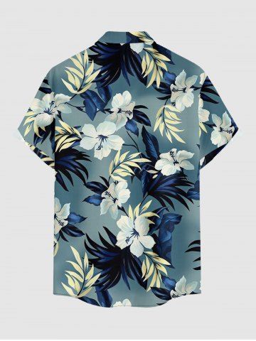 Plus Size Hibiscus Flower Tropical Leaf Print Buttons Pocket Hawaii Shirt For Men - Paon Bleu - 4xl