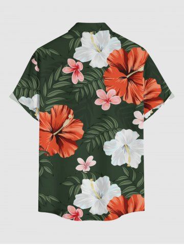 Plus Size Hibiscus Flowers Leaf Print Buttons Pocket Hawaii Shirt For Men - Vert Profond - 4xl