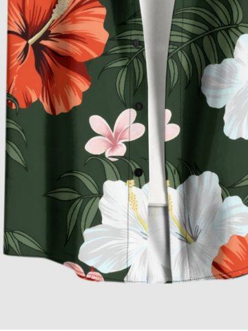 Plus Size Hibiscus Flowers Leaf Print Buttons Pocket Hawaii Shirt For Men - Vert Profond - 5xl