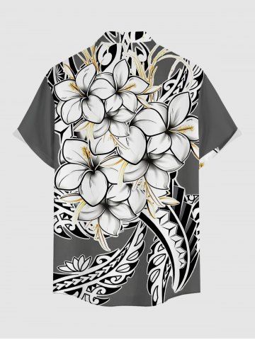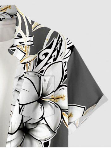 Plus Size Hibiscus Flowers Leaf Print Buttons Pocket Hawaii Shirt For Men - Gris - Gris