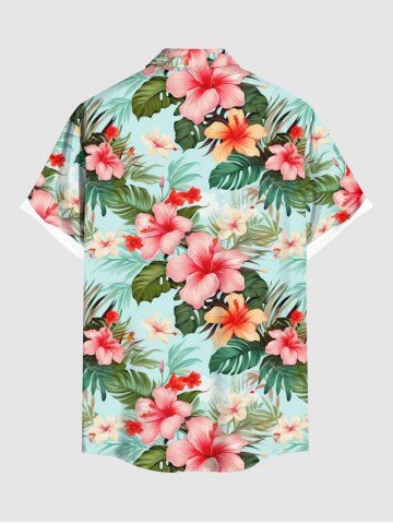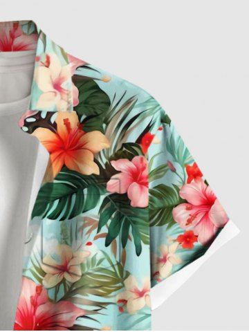 Plus Size Hibiscus Flowers Leaf Tropical Print Buttons Pocket Hawaii Shirt For Men - Vert - Vert