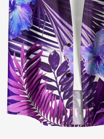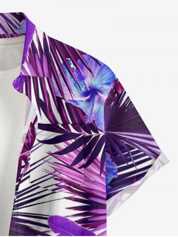 Plus Size Hibiscus Flowers Tropical Leaf Print Buttons Pocket Hawaii Shirt For Men - Violacé Rouge - M