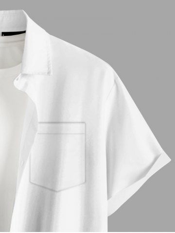 Plus Size Hibiscus Flowers Tropical Leaf Print Buttons Pocket Hawaii Shirt For Men - Blanc - Blanc