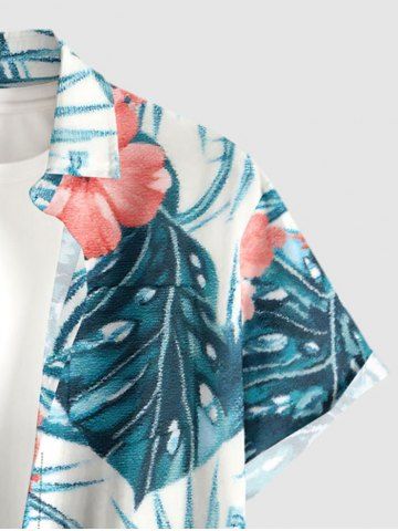Chemise à Manches Courts> Plus Size Hibiscus Flowers Tropical Leaf Print Buttons Pocket Hawaii Shirt For Men