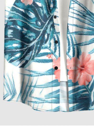 Plus Size Hibiscus Flowers Tropical Leaf Print Buttons Pocket Hawaii Shirt For Men - Paon Bleu - 6xl