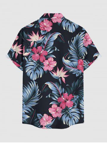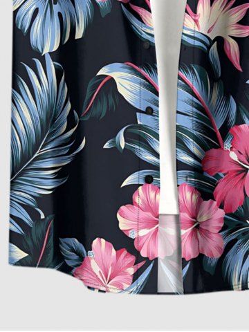Plus Size Hibiscus Flowers Tropical Leaf Print Buttons Pocket Hawaii Shirt For Men - Noir - Noir