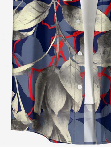 Plus Size Leaf Flower Branch Print Hawaii Button Pocket Shirt For Men - Bleu De Minuit - Xl