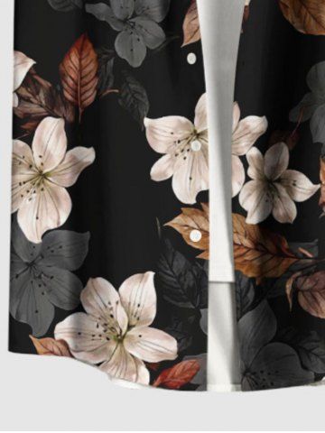 Plus Size Leaf Flower Print Hawaii Button Pocket Shirt For Men - Noir - Noir