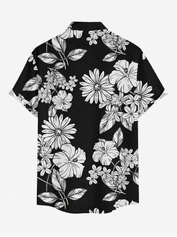 Plus Size Leaf Hibiscus Flower Print Hawaii Button Pocket Shirt For Men - Noir - Noir