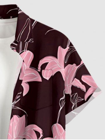 Plus Size Lily Flower Print Hawaii Button Pocket Shirt For Men - Rouge Foncé - 4xl