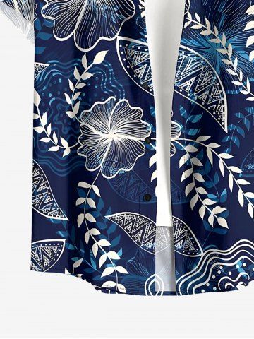 Plus Size Men's Flowers Leaf Print Buttons Pocket Hawaii Shirt - Bleu Profond - 4xl