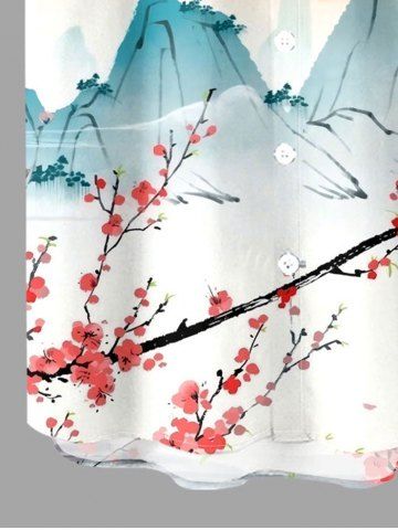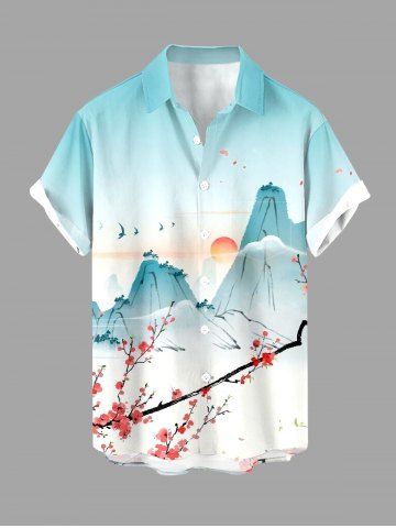 Plus Size Mountain Flower Branch Sun Print Buttons Pocket Hawaii Shirt For Men - Bleu Clair - Bleu Clair