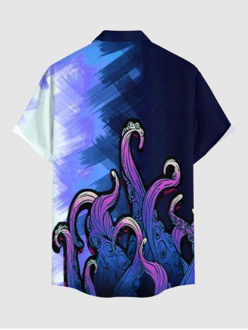 Chemise à Manches Courts > Plus Size Octopus Brush Painting Print Hawaii Button Pocket Shirt For Men