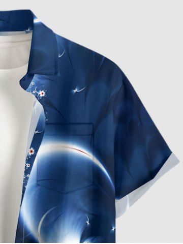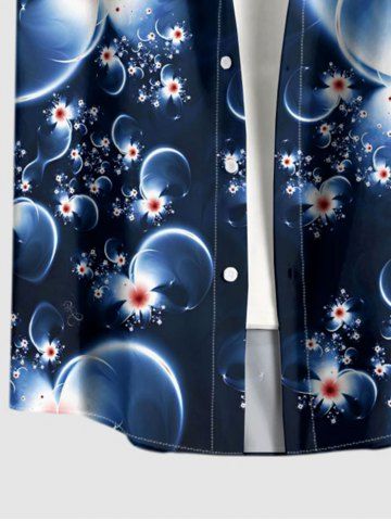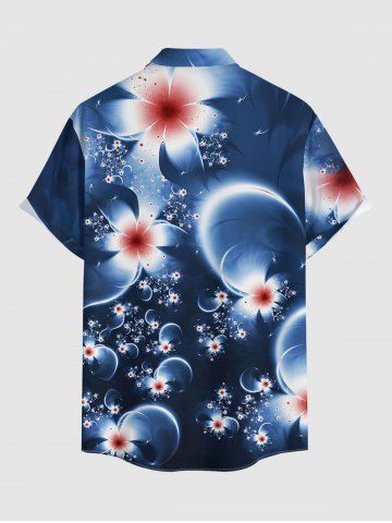 Plus Size Ombre Flower Bubble Print Hawaii Button Pocket Shirt For Men - Bleu Profond - M