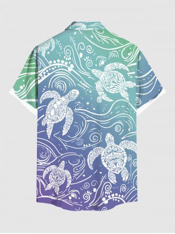 Plus Size Ombre Sea Waves Turtle Print Buttons Pocket Hawaii Shirt For Men - Bleu - Bleu