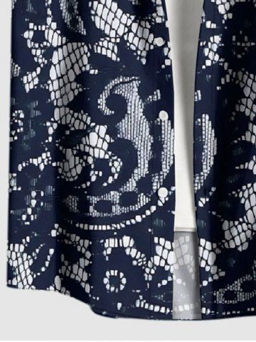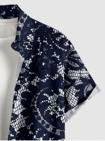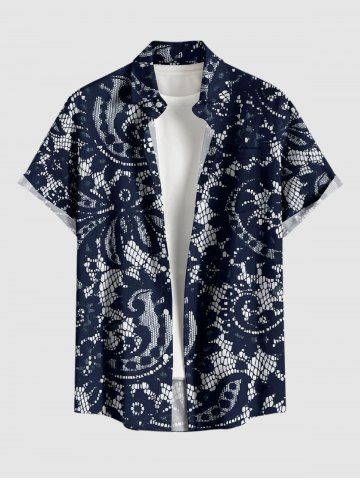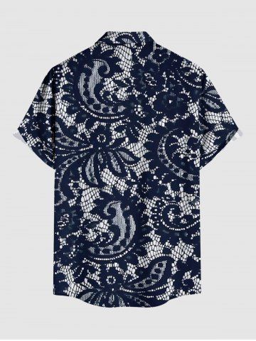 Plus Size Paisley Floral Lace 3D Print Buttons Pocket Hawaii Shirt For Men - Bleu Profond - 2xl