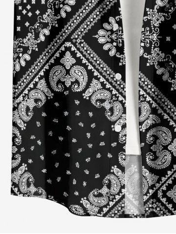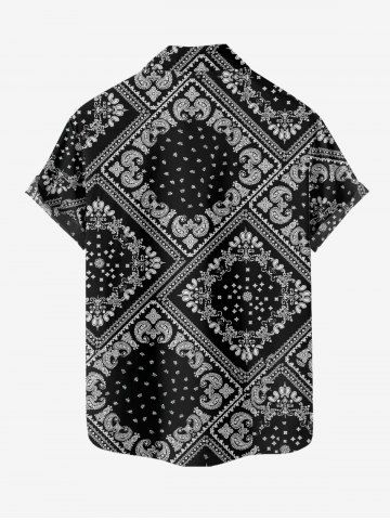 Plus Size Paisley Floral Scarf Print Buttons Pocket Hawaii Shirt For Men - Noir - Noir