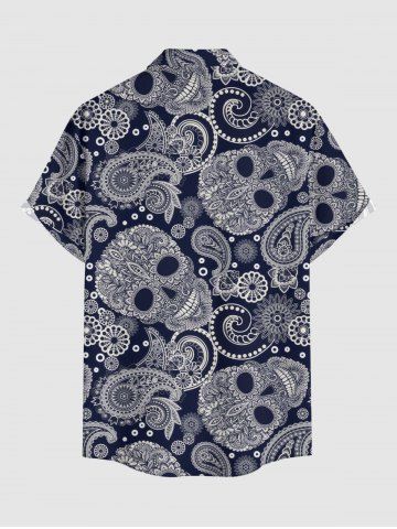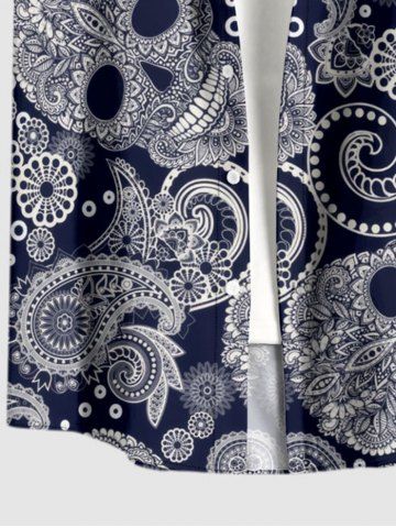 Plus Size Paisley Floral Skull Print Buttons Pocket Hawaii Shirt For Men - Bleu Profond - 3xl