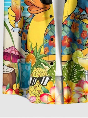 Chemise à Manches Courts> Plus Size Parrot Duck Pineapple Fruit Juice Flowers Print Buttons Pocket Hawaii Shirt For Men