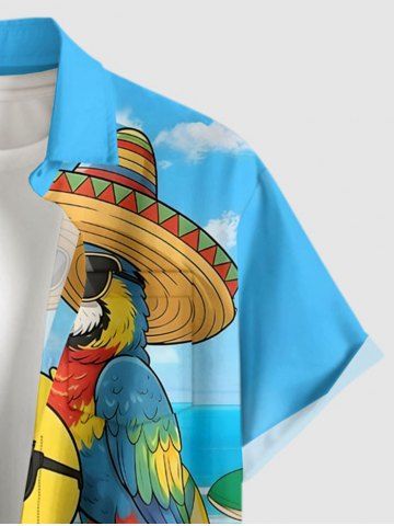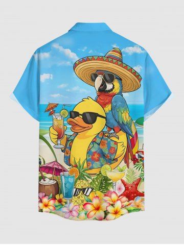 Plus Size Parrot Duck Pineapple Fruit Juice Flowers Print Buttons Pocket Hawaii Shirt For Men - Bleu Ciel - Bleu Ciel