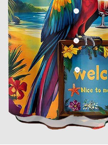 Chemise à Manches Courts > Plus Size Parrot Seascape Print Hawaii Button Pocket Shirt For Men