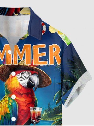 Plus Size Parrot Seascape Print Hawaii Button Pocket Shirt For Men - Bleu Profond - 5xl