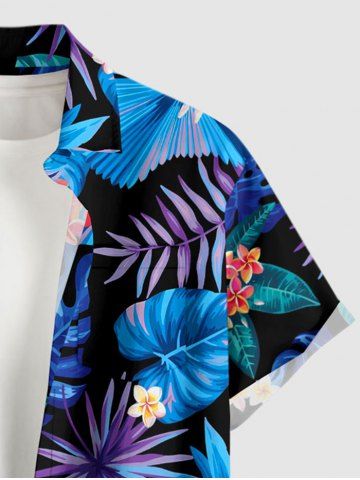 Plus Size Pineapple Flowers Tropical Leaf Print Buttons Pocket Hawaii Shirt For Men - Bleu - Bleu