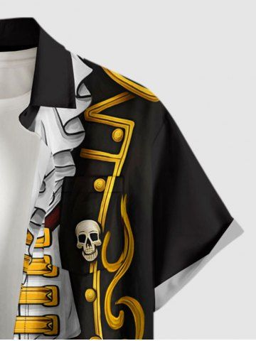 Plus Size Pirate Costume Pattern Print Hawaii Button Pocket Shirt For Men - Noir - Noir
