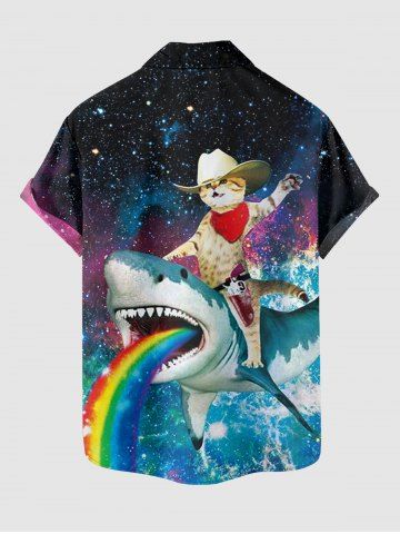 Plus Size Shark Rainbow Cat Sea Galaxy Print Hawaii Button Pocket Shirt For Men - Pers - 6xl