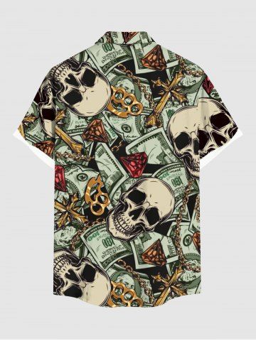 Plus Size Skull Dollar Diamond Print Buttons Pocket Shirt For Men - Noir - Noir