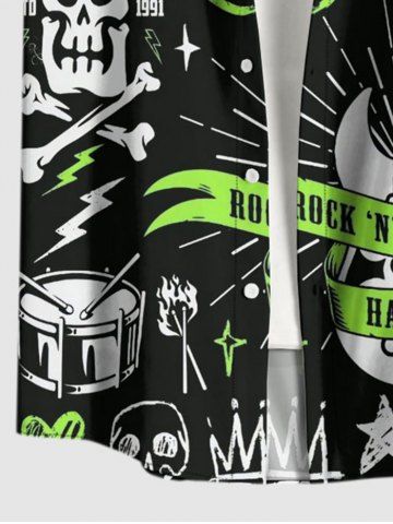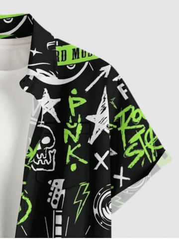 Plus Size Skull Guitar Print Hawaii Rock and Roll Button Pocket Shirt For Men - Vert - Vert