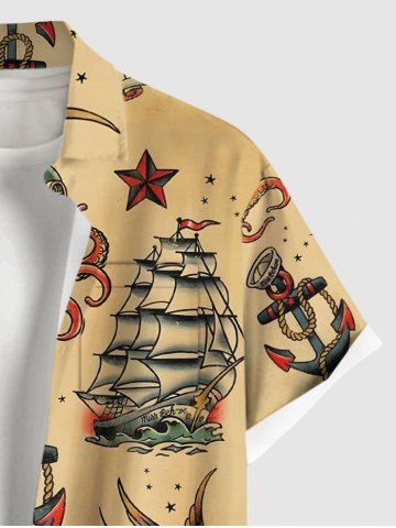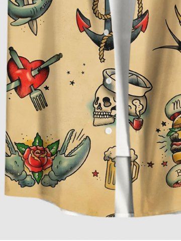 Plus Size Skull Heart Octopus Anchor Hamburger Flowers Print Buttons Pocket Hawaii Cruise Shirt For Men - Café Lumière - 6xl